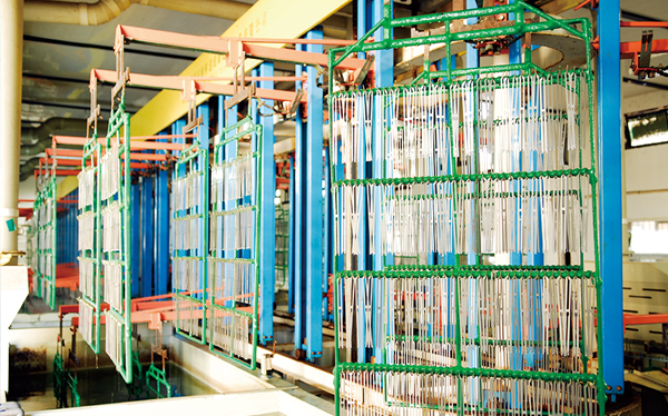 公司現(xiàn)有固定資產(chǎn)6000余萬元,員工300余人,現(xiàn)具有年產(chǎn)噴氣異型筘12萬米,劍桿筘32萬米,噴水筘5萬米,綜框20萬片,鋼片綜2億片,停經(jīng)片1.5億片, 織軸1.2萬套的生產(chǎn)能力。公司“越泉”商標被評為“中國馳名商標”。公司通過ISO9001 :2015國際質(zhì)量體系認證,ISO14001:2015國際環(huán)境管理體系認證,ISO45001:2018國際職業(yè)健康安全管理體系認證,噴氣織機用鋼筘和織機用鋁合金綜框獲得“浙江制造”品牌認證,公司擁有自營進出口權,產(chǎn)品暢銷全國并遠銷印度、巴基斯坦、土耳其、埃及、哥倫比亞、意大利等國家和地區(qū)。
